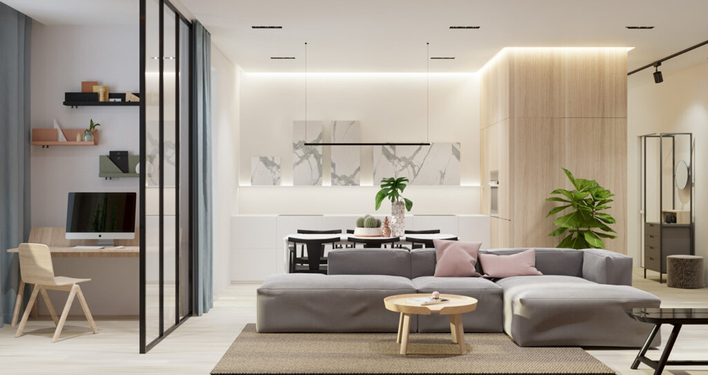 Sade ama davetkâr bir atmosfer yaratmak için krem ve toprak tonlarında mobilyalar tercih edilir. Bu renkler, sıcak ve rahatlatıcı bir hava oluşturur. Böylece ortam daha huzurlu hale gelir. Organik malzemeler, doğallığı ve sadeliği vurgular. Ahşap, doğal taş ve dokulu sıvalar, mekanın karakterini belirler. Bu malzemeler, iç mekanda doğayı hissettirir. Az ama etkileyici dekor, mekanı şık kılar. Sanatsal ama minimalist objeler, dikkat çekici detaylar sunar. Bu öğeler, estetik ve fonksiyonellik arasında denge kurar.